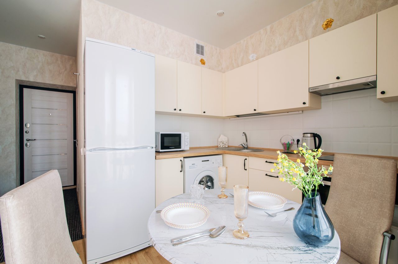 Удобное и комфортное место проживания. Тихий район. В апартаментах есть всё что нужно для проживания. Посуда, холодильник, стиралбная машина,плита,духовка, микроволновка. Просторый балкон. Чистое бельё и полотенца. Утюг, гладильная доска и фен. Рядом парк и магазины. До метро тоже недалеко. Также есть парковка для машины. В следующий раз обязательно воспользуемся услугами этой фирмы. Рекомендую.