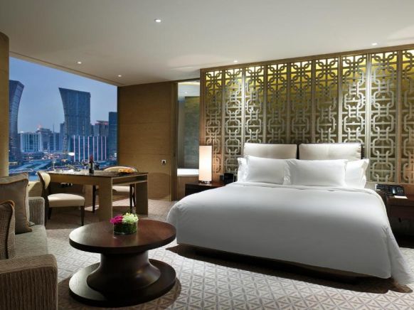 Из просторных номеров отеля Grand Kempinski Shanghai открывается вид на город или набережную Вайтань.