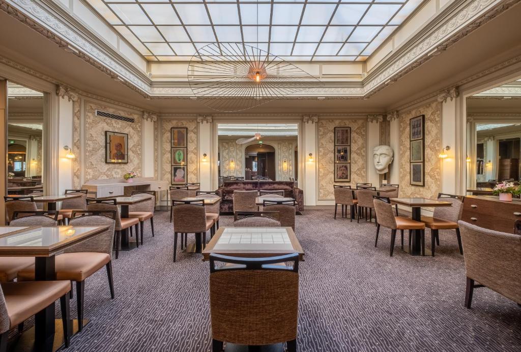 Каждое утро в помещении со стеклянным потолком в стиле ар-деко сервируют разнообразный завтрак «шведский стол».
