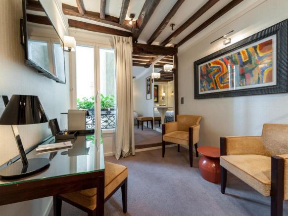 Из окон открывается вид на парижские улицы или внутренний двор отеля.