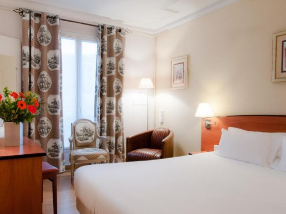 Чистый и светлый номер с удобной кроватью, можно пользоваться интернетом. Круглосуточно работает стойка регистрации, бар и терраса. Отель расположен в районе Монмартр, рядом со станцией метро. Парковка для гостей отеля – платная.