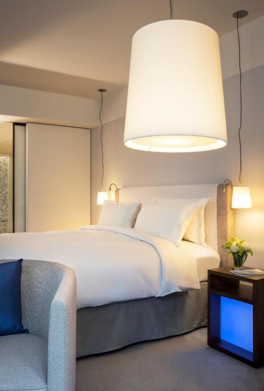 В уютных номерах с декоративной подсветкой установлены кровати с ортопедическим матрасом с эффектом памяти, а также в числе удобств док-станция Bose для iPod, кофемашина Nespresso и приветственный набор с чаем Dammann.