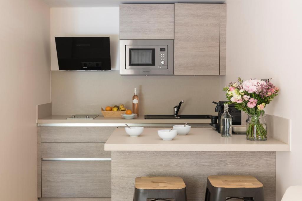 Все номера-студио и апартаменты располагают собственной террасой и мини-кухней с плитой и холодильником.