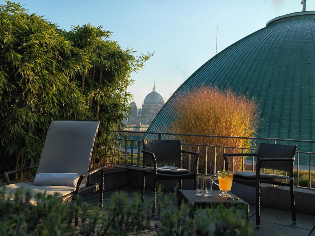 Кроме того, в отеле открыты бары Velvet Room и Bebel; из последнего открывается вид на площадь Бебельплац и Берлинскую государственную оперу.