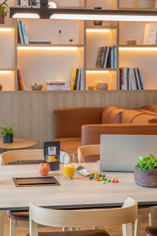 В отеле Innside by Meliá Düsseldorf Seestern предлагаются светлые номера открытой планировки с кроватями размера «queen-size» и ванной комнатой с прозрачными стенами.