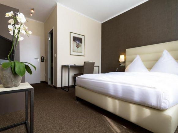 This 4-star hotel in Düsseldorf features spa facilities and on-site parking.