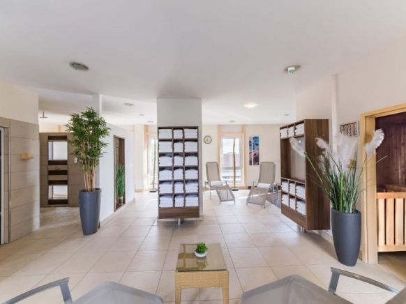 Guests enjoy free use of a fitness area with sauna.