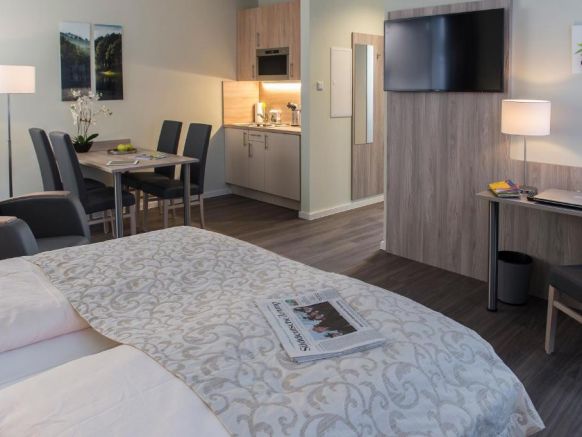 Этот апарт-отель с просторными номерами, бесплатным тренажерным залом и сауной находится в 3 минутах езды от городской кольцевой дороги Митлерер и в 10 минутах езды на метро от Центрального железнодорожного вокзала Мюнхена.
