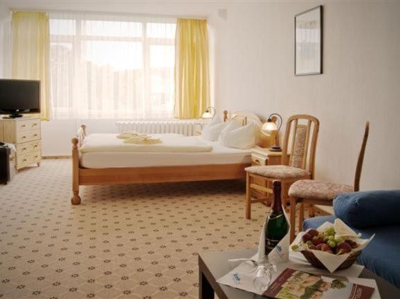 Среди удобств всех номеров и люксов отеля Schlosshotel Stecklenberg — мини-бар и телевизор со спутниковыми каналами.