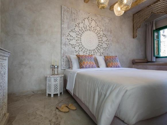 Интерьеры люксов и виллы бутик-отеля In Camera примечательны арками, потолочными балками и узорной плиткой.
