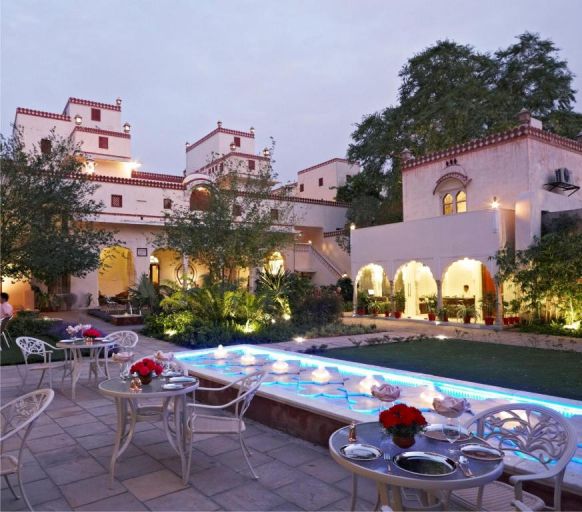 Отель Arya Niwas с садами и пейзажной лужайкой занимает отремонтированный экологичный хавели (дворец).