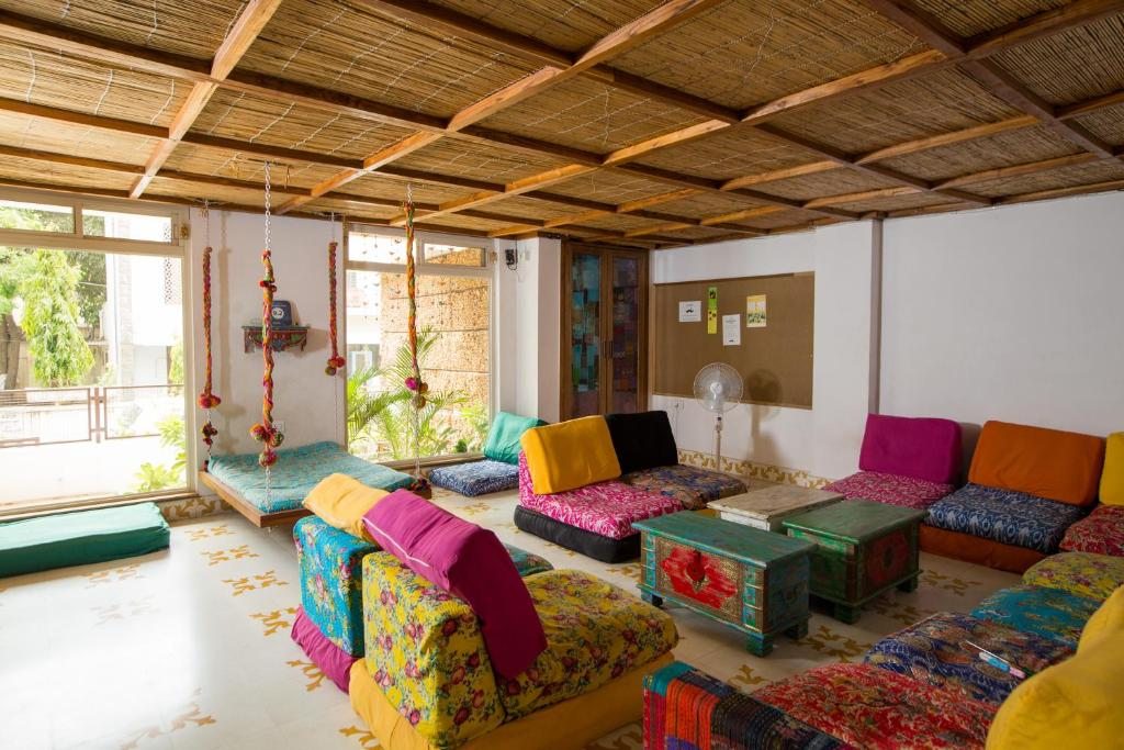 Гости хостела The Moustache, Jaipur могут отдохнуть в лобби или во дворе.