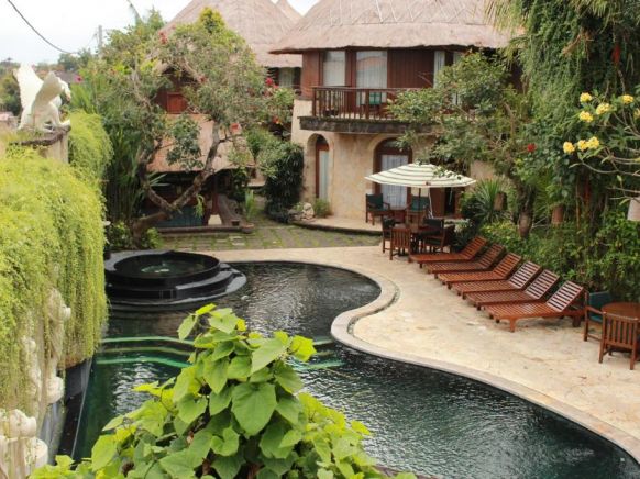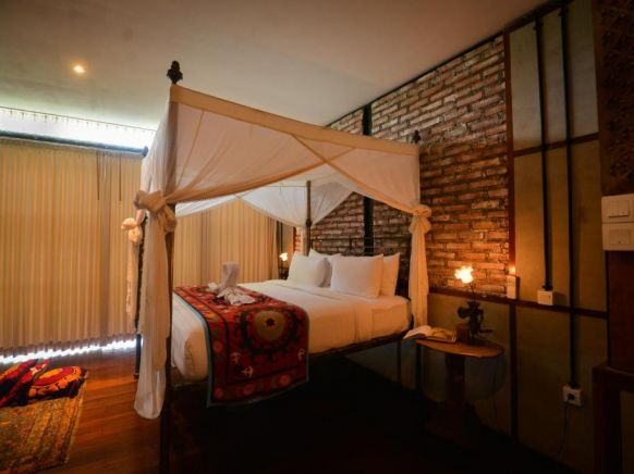 Виллы оформлены в теплых тонах, обставлены мебелью из темного дерева и украшены балийскими произведениями искусства.