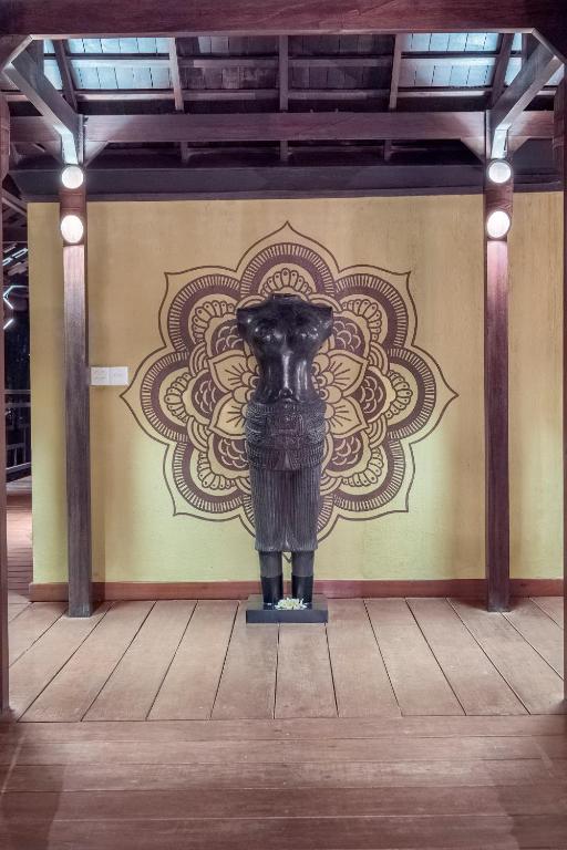 Номера с большими окнами оформлены в традиционном балийском стиле и обставлены деревянной мебелью.