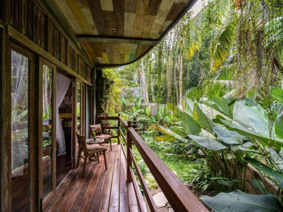 Виллы комплекса Adiwana Arya Villas представляют собой традиционные деревянные дома.