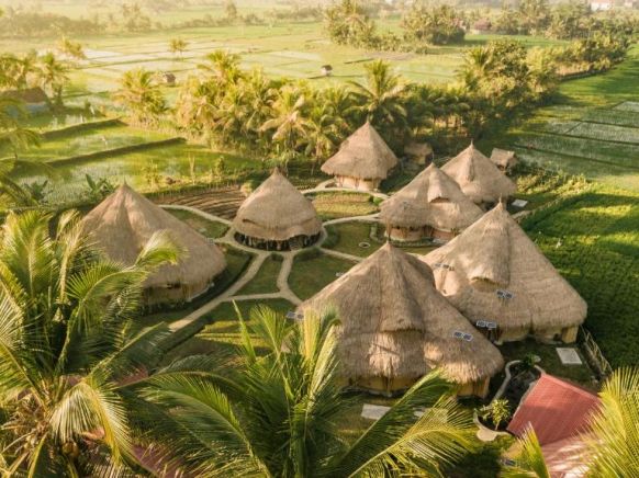 Из некоторых вилл открывается вид на горы и окружающие рисовые поля.