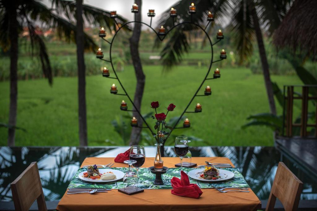 К услугам гостей этого комплекса с видом на окружающие рисовые поля и вулкан Батур, просторные виллы с собственным бассейном, общий открытый бассейн, бесплатный Wi-Fi и бесплатный трансфер до центра Убуда.