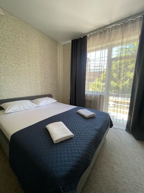 Снимали с друзьями коттедж и так этому были рады. Двухэтажный коттедж в 2х минутах от моря это так круто. На территории есть терраса оборудованная столиками и вечером можно посидеть и пообщаться как с друзьями так и с ребятами, которые проживали в корпусе. Корпус, который находится на территории большой и имеет большое количество номеров. Заходили в гости к ребятам и нам очень понравилось, что номера уютные, есть все необходимое. Так же круто, что есть бассейн, который работает круглый год, да еще и с подогревом. Очень приветливый и дружелюбный, помогут с любым вопросом. Кстати, в отеле есть столовая. Повар готовит так вкусно, что по итогу приняли решение кушать в отеле, несмотря, на то, что коттедже есть кухня. Понравилось еще местоположение отеля. Море в 2х минутах, Мандарин через дорогу, до рынка и ТЦ пару минут. Одним словом, все остались в восторге. Так, что на следующий год вернемся сюда. Подробнее