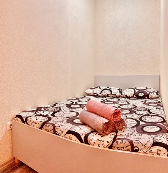 Для размещения постояльцев подготовлена комфортная квартира, оснащенная всем необходимым, в том числе удобным спальным местом, постельным бельем, телевизором. А ванной приготовлен комплект полотенец.
