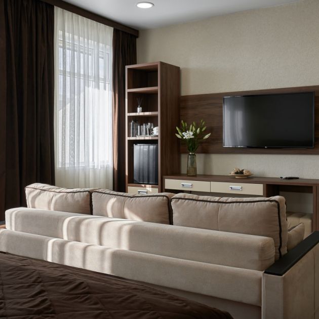 Отдыхали 2-е суток на новогодние. Очень понравился сам номер и обслуживание. Номер очень чисто убрали, в наше отсутствие, хотя отдыхали всего 2 дня. Очень чисто, тепло. В номера ванная, а не душ, все принадлежности для личной гигиены, очень порадовал фен. Приятный и отзывчивый персонал, очень приятно когда к тебе относятся с душой. Хороший ремонт, все ухоженное. Отдельно порадовал матрац . Постельное белье и полотенца белоснежные. В общем отдых на отлично. Подробнее
