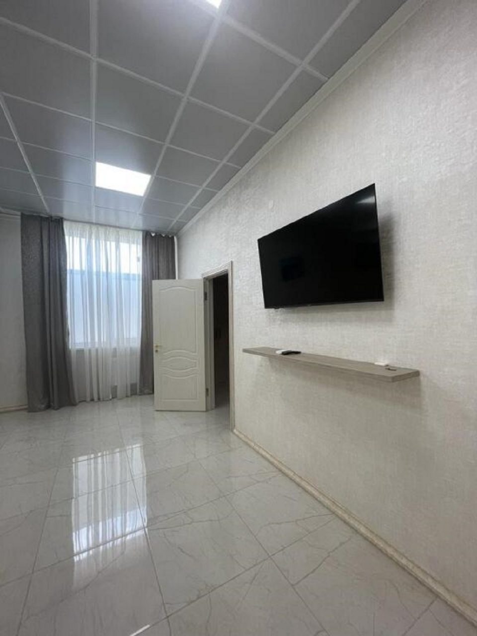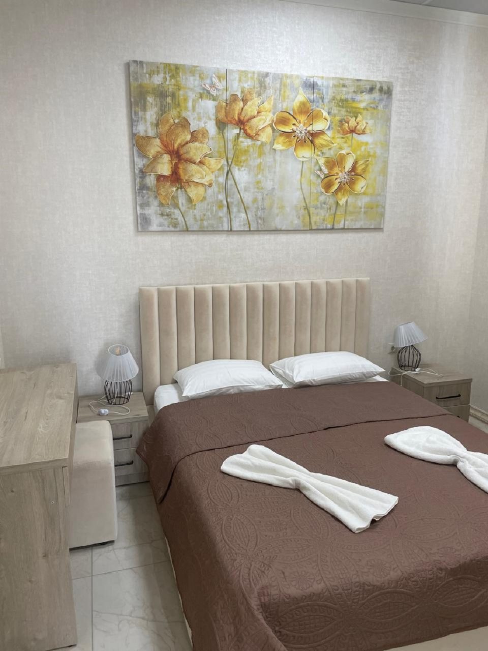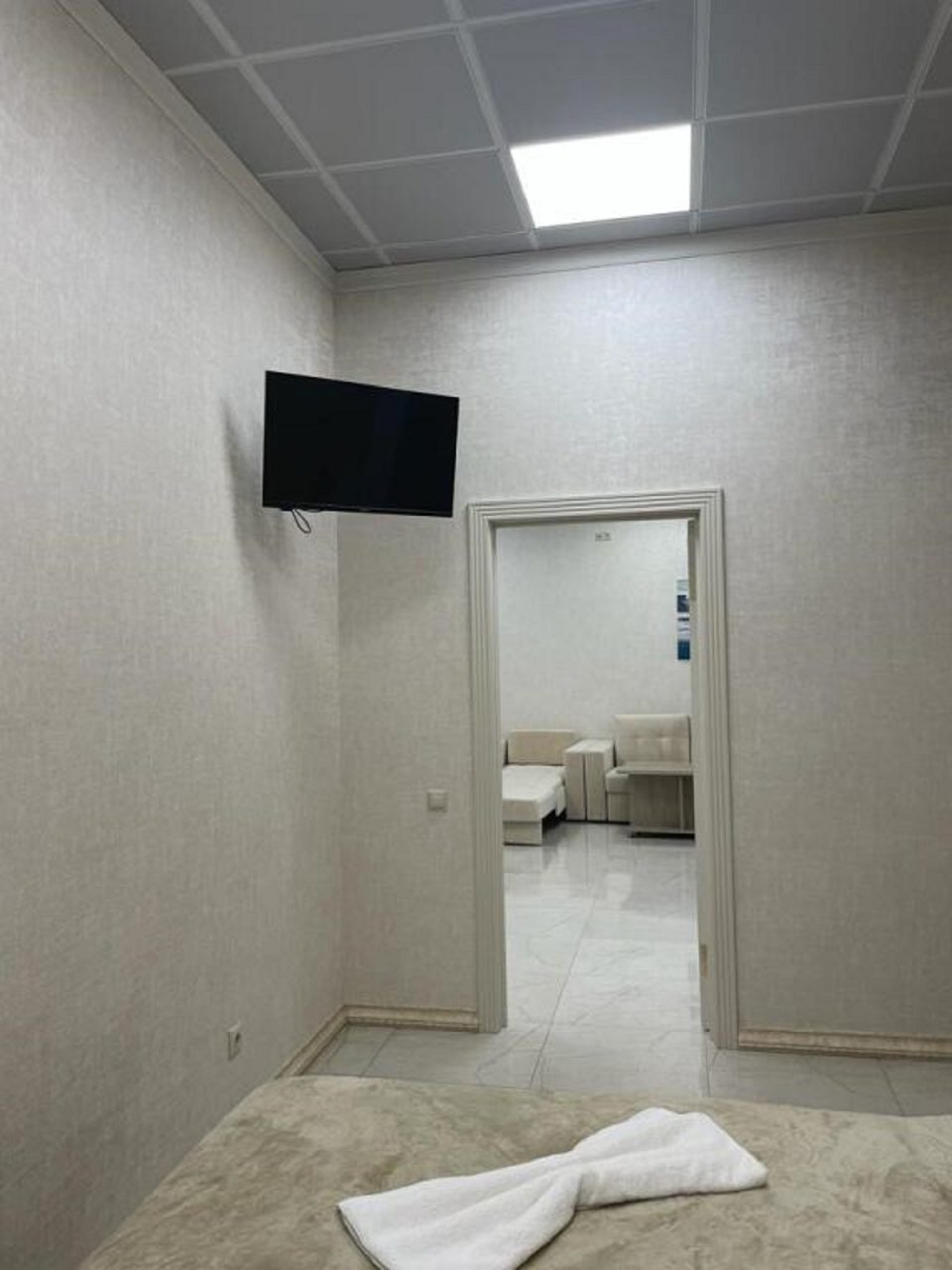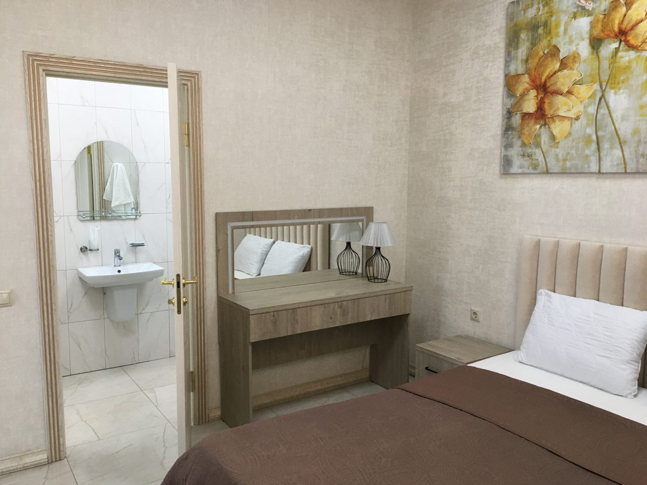 Отличный новый отель в самом центре, на против Автовокзала. На первом этаже кафе шашлычная, для проживающих в отеле скидки. В номерах чисто. На этаже всего три номера и никто никому совсем не мешает. Есть оборудованная кухня со всем необходимым и стиральной машинкой. Прямо на против Магнит и вокруг полно мест, где можно перекусить. Море относительно рядом, по пути полно развлекаловок, парков и т.п. За парковку, необходимо предупреждать заранее.