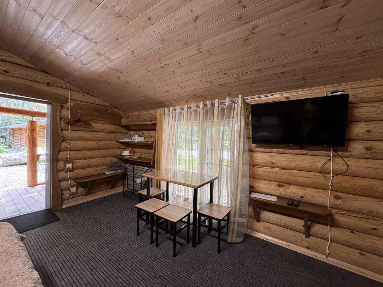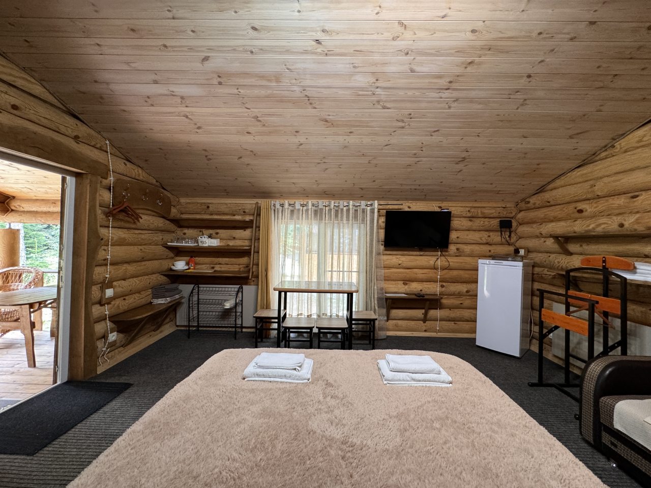 В оформлении номеров преобладает натуральное дерево. В каждом имеется удобная двуспальная кровать, мягкий диван, телевизор, санузел с раковиной, душевой, туалетом, феном, полотенцами и средствами для личной гигиены.