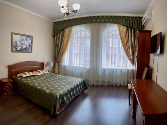 В светлых номерах категорий эконом и полулюкс есть вся необходимая мебель и техника. Ванными комнатами оборудованы только полулюксы. Эта гостиница привлекает своих гостей приемлемыми ценами на размещение.