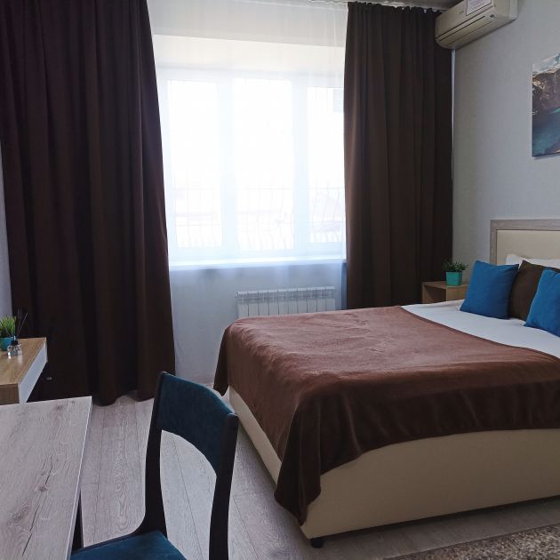 В этом отеле много несомненных плюсов. К ним относится удобная кровать с белоснежным хлопковым бельём, полотенца в нужном количестве, современная обстановка, наличие мебели, чистота и уют. Также для удобства гостей предусмотрена паста, щетка, тапочки одноразовые, гель для душа, мыла и халат. Подробнее