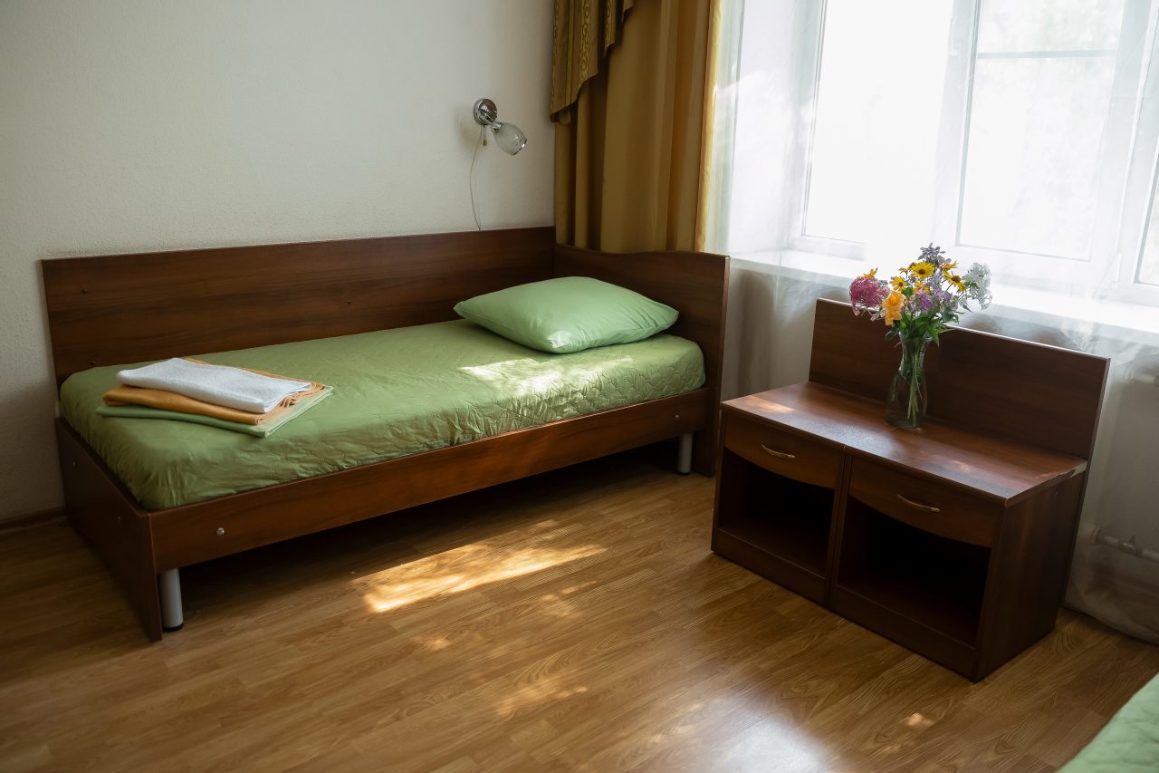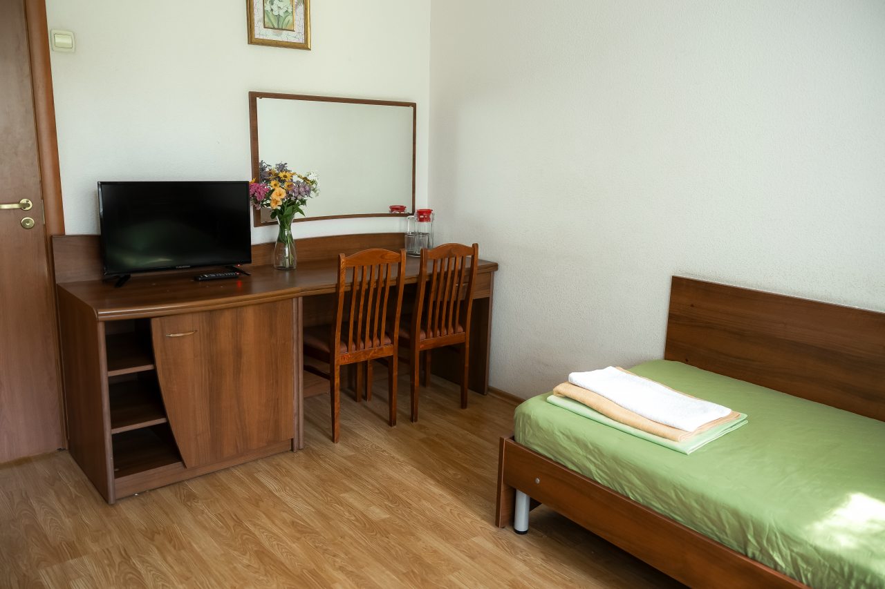 В санатории к заселению предоставляются комфортабельные номера, которые разделены на два жилых корпуса. Все категории оснащены мебелью, техникой, есть ванная комната с душем и туалетом. Так же работает бесплатный Wi-Fi