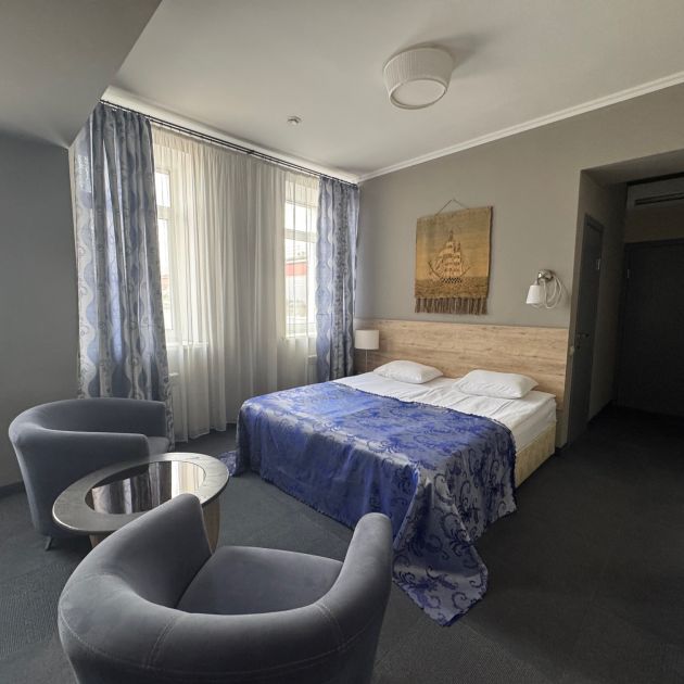 Рад, что выбрали этот отель. Все необходимое под рукой: автовокзал, торговый центр "Мельница" и супермаркет "Пятерочка" в пешей доступности. Очень удобно. Внутри отеля царит спокойствие и тишина. На первом этаже расположен ресторан "Очаг", и хотя там есть живая музыка, в номерах это не мешает. Персонал вежлив и обходителен. Номер светлый, чистый и уютный, оборудован кондиционером, чайником и холодильником. Подробнее