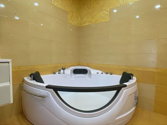 Восхитительная большая квартира на семью с панорамными окнами на город. Просто потрясающе! Все было убрано, чисто. Было приятно отдыхать. Оборудованы апартаменты отлично, вся необходимая техника есть.