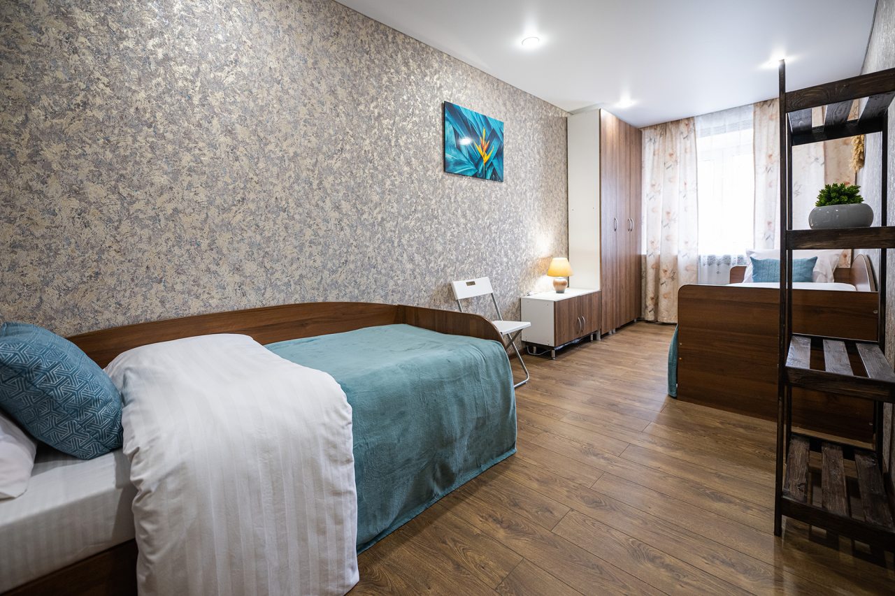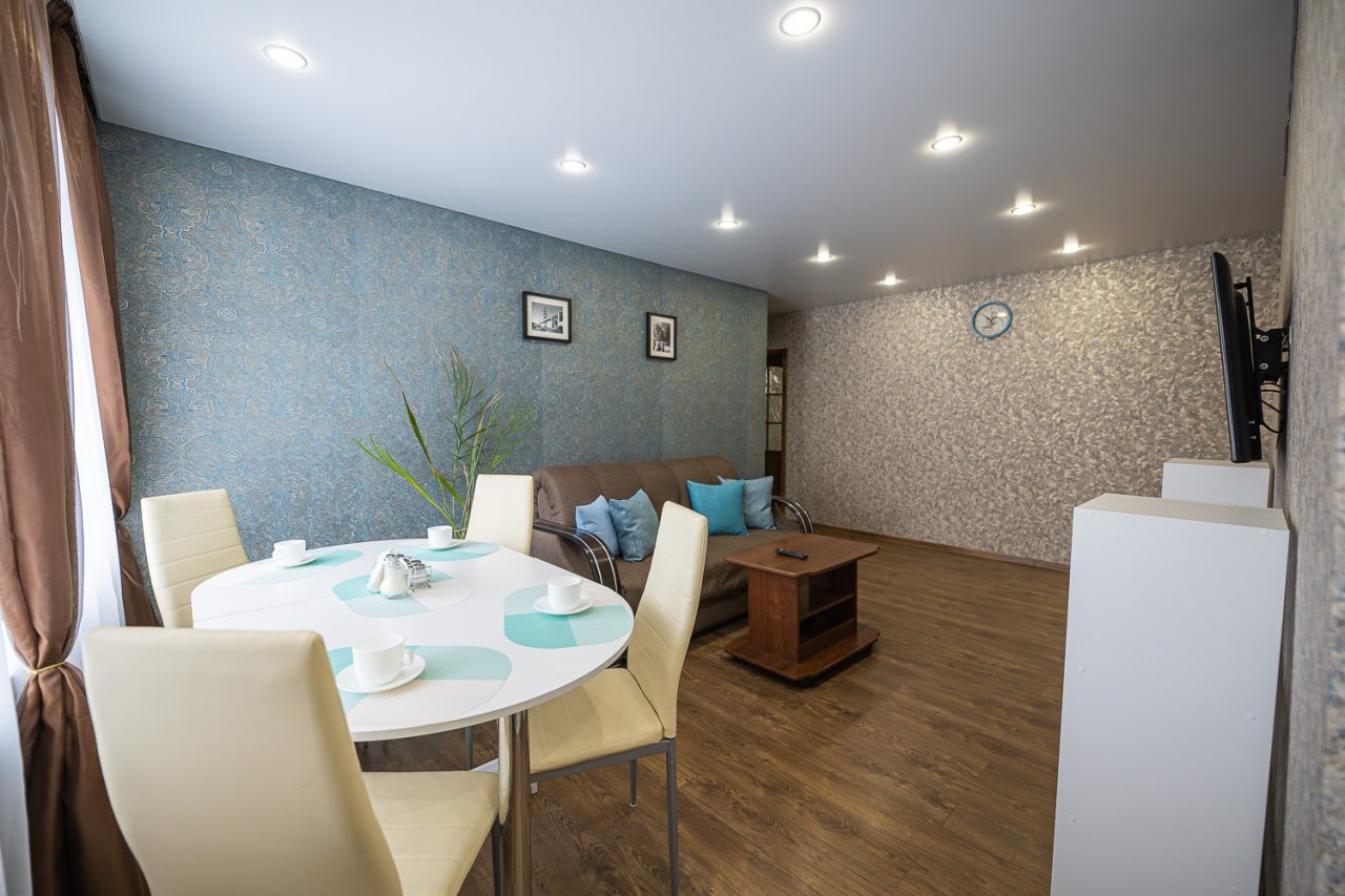 В этой просторной квартире мы провели 6 дней. Приезжали с детьми, разместились каждый в своей комнате. Расположена квартира неподалеку от центра Челябинска. На кухне есть посуда, нам удавалось готовить и достаточно много. За обеденным столом как раз вчетвером размещались. Особенно отмечу, что в квартире было чисто и все отлично подготовлено. Выехали мы без проблемы, все остались довольны.