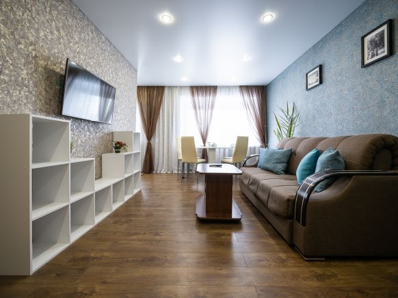 Место нам сразу понравилось — очень уютно, и как-то даже по-домашнему спокойно. Нам с мужем особенно понравился стильный интерьер — чувствуется, что всё продумано. Мы комфортно разместились с детьми, студия оказалась довольно просторной, чтобы всем хватило места. Вид из окон радовал — город открывается с приятной стороны. Вечером было приятно посидеть за чашкой чая в такой обстановке.