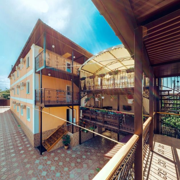 Очень интересный гостевой дом со своим стилем, чувствуется что хозяева вложили душу в создание условий для гостей. Территория зеленая, интересно со вкусом оформленная, номера расположены так что гости не мешают друг другу, есть все что необходимо даже две большие стиральные машины для общего пользования. От моря идти минут 12-15 . Большая стоянка для машин за забором. Подробнее