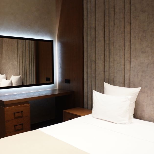 Большое пространство номера даёт возможность свободно располагаться и перемещаться. Внутри предусмотрены необходимые элементы мебели для комфортного проживания. Ложась спать, ощущаешь качественный текстиль и хорошее самочувствие утром. Не слышится шума извне, отсутствуют нежелательные запахи. Стоимость умеренная, сервис хороший, сотрудники приветливые. Подробнее