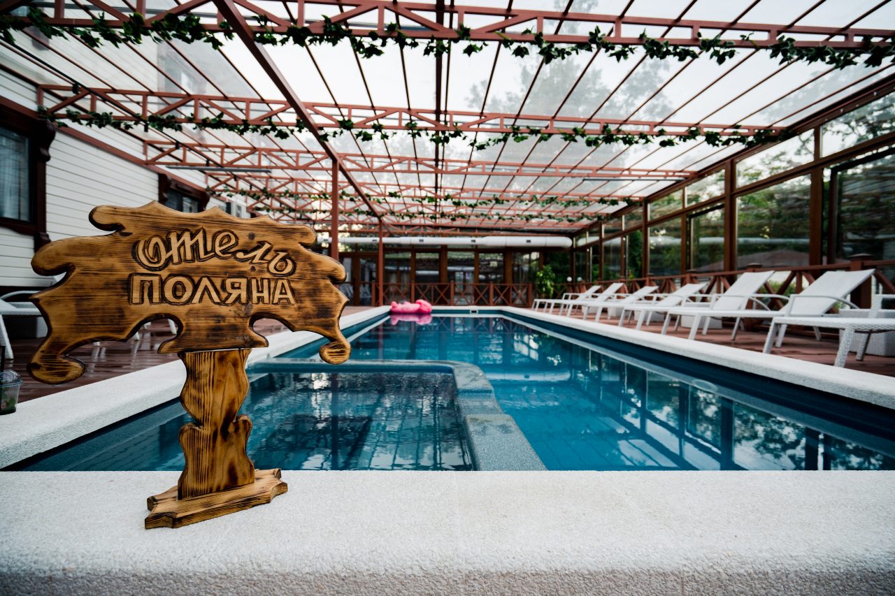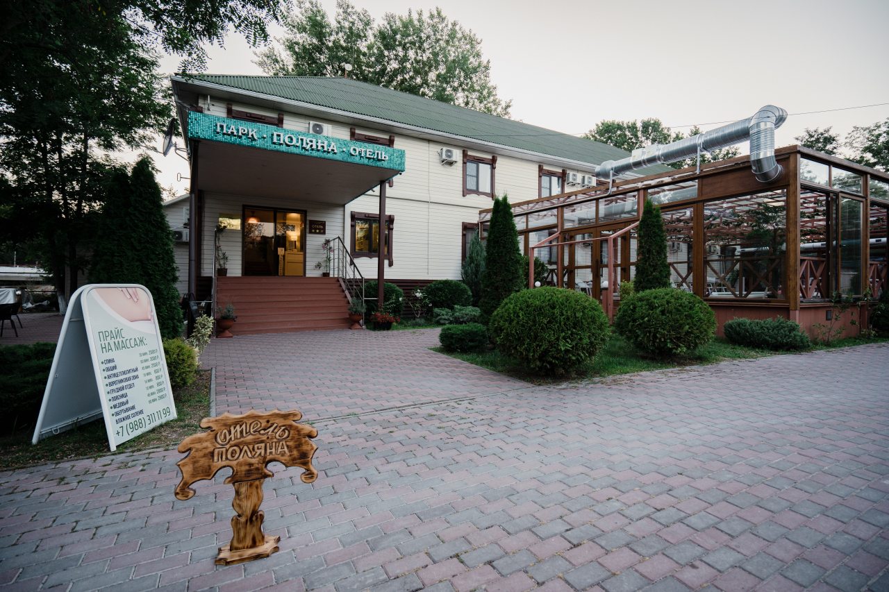 Парк-отель «Поляна» находится в селе Дивноморское, близ реки Мезыбь. Населённый пункт носит еще одно название - «Фальшивый Геленджик», которое получил в XIX веке во время русско-турецкой войны. Территория объекта благоустроена беседками для отдыха и бесплатной парковкой для автомобилей.