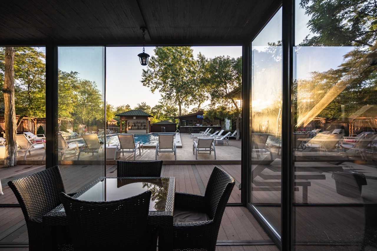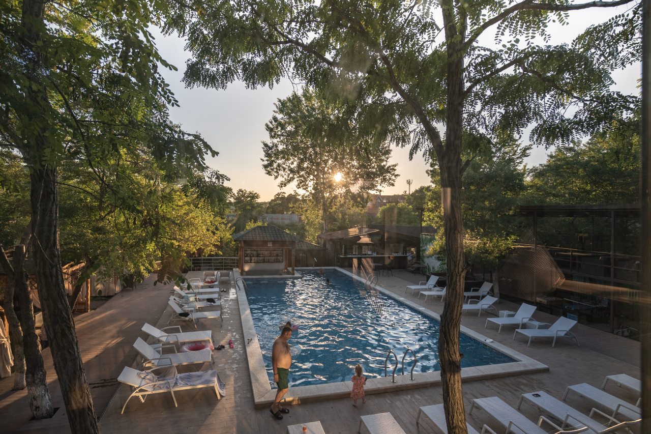 На территории находится бассейн с детской зоной, русская баня, детская площадка, бильярд, настольный теннис и аэрохоккей. Расстояние до аэропорта — 13,1 км, до железнодорожного вокзала -— 38,5 км, пляж — 1 км.