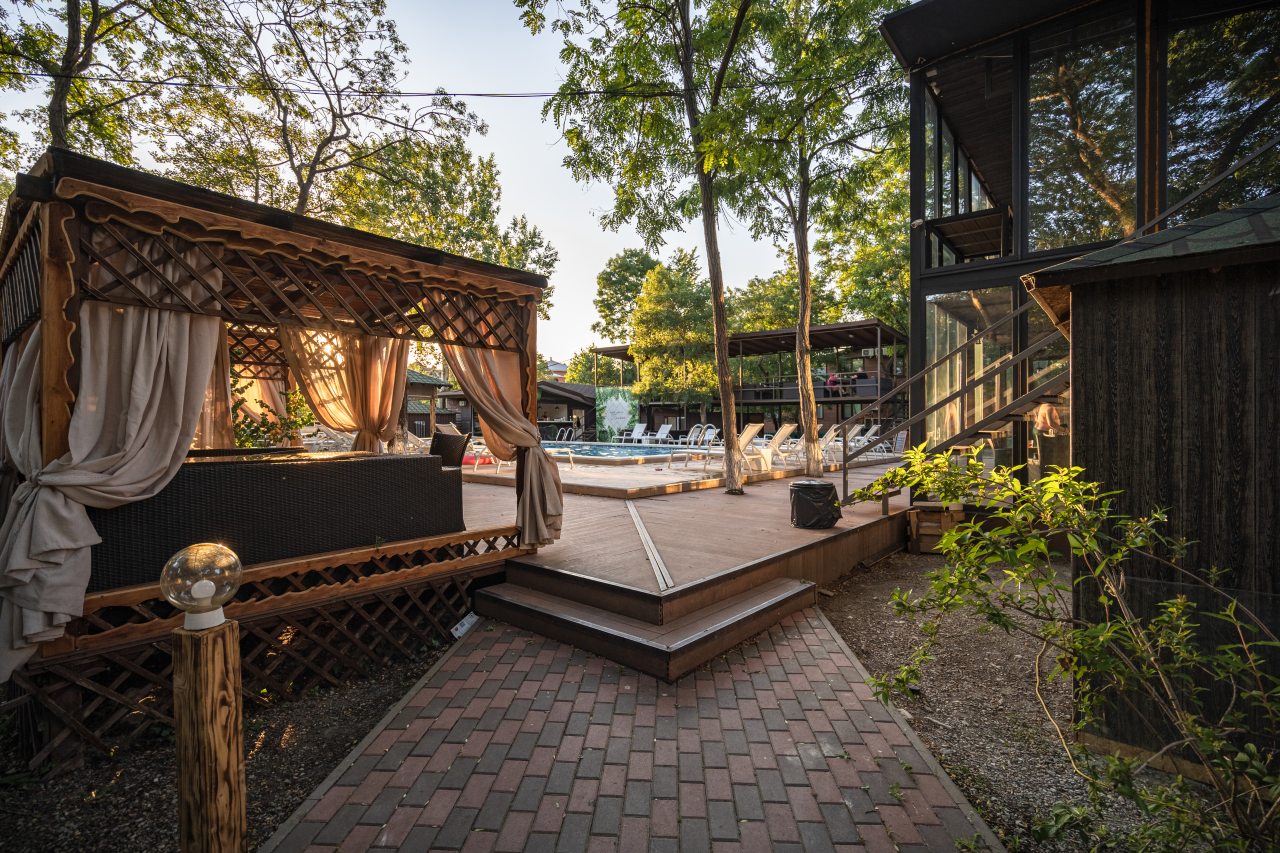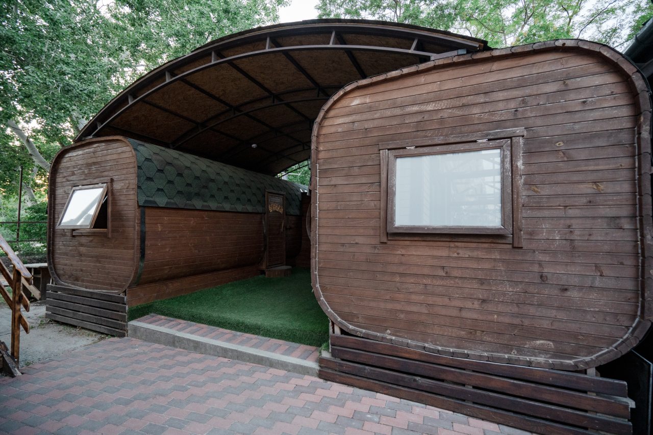 Есть общая кухня, а в некоторых есть персональная кухонная зона. Также предусмотрен мангал и мини-бар.