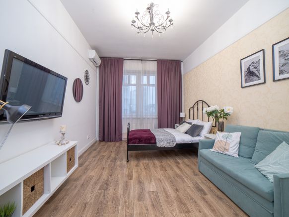 Ремонт очень классный. Всё выполнено в бежевых, светлых тонах. Очень светлая квартира, для любителей солнца и минимализма. Арендодатель был на связи, заселились мы дистанционно, что оказалось очень удобной штукой. Соседей слышно не было. В апартаментах было довольно чисто, видно, что провели уборку перед нашим заездом. Расположение - отличное.