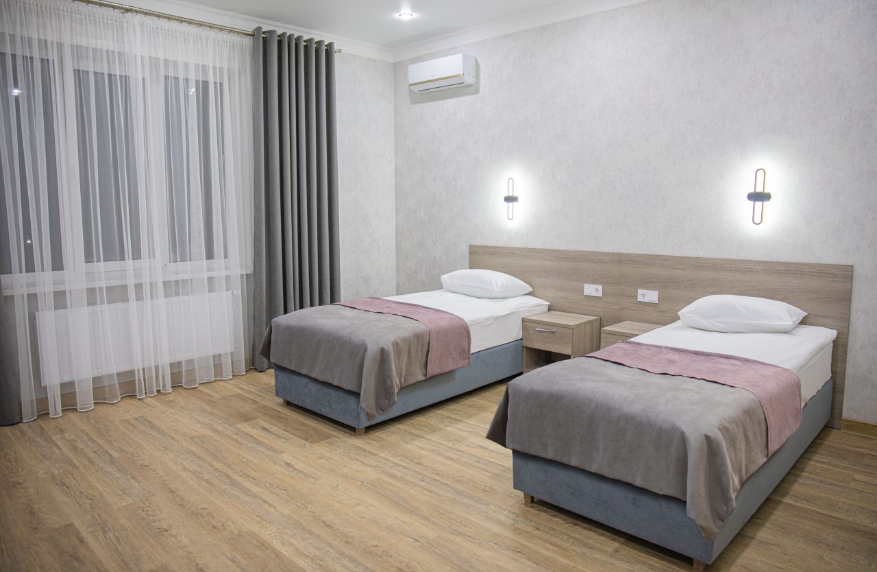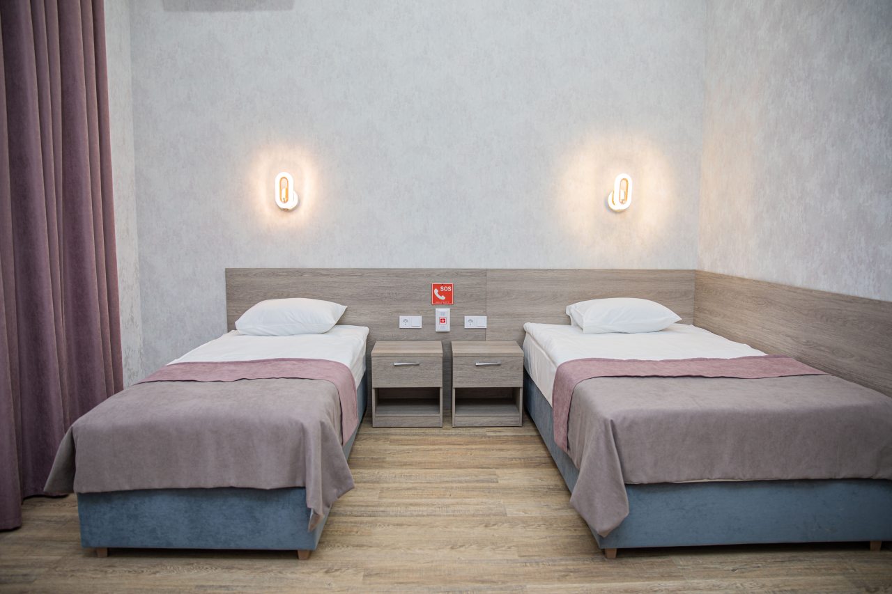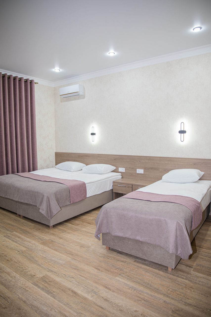 Гостям на выбор предоставляются двухместные, трёхместные номера. Каждый из вариантов оснащен удобными кроватями, мебелью, современной техникой, ванной комнатой с санузлом. Есть доступ к сети Wi-Fi.