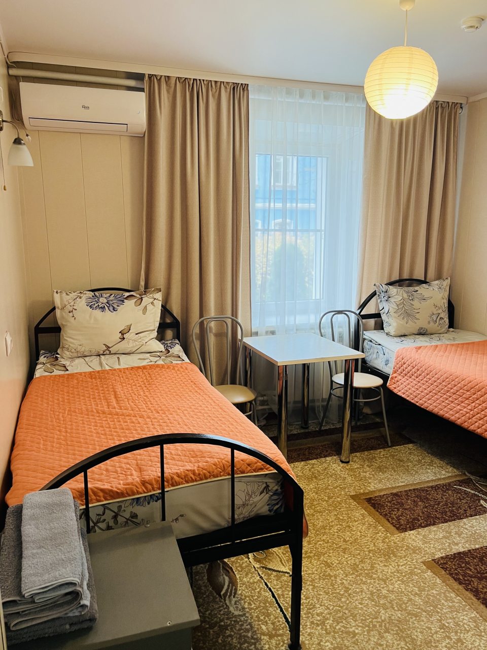 Для размещения предлагаются двухместные и трехместные номера, которые оснащены необходимой мебелью и техникой. Общая ванная комната оборудована стандартным набором сантехники.