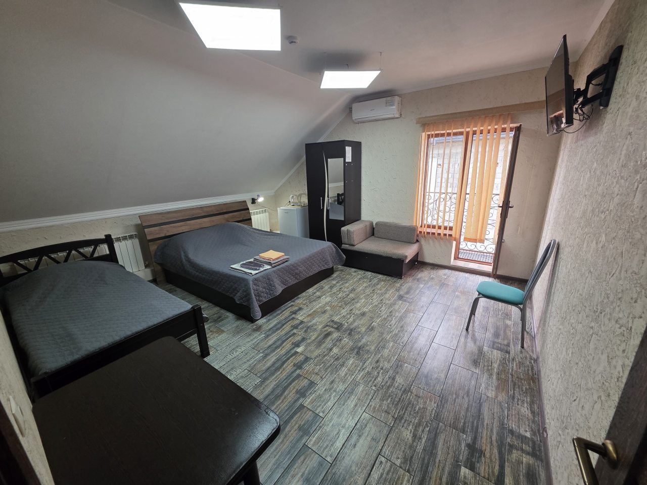 Гостям предлагается 6 номеров на выбор. В каждом из них находится свой телевизор, кондиционер, интернет, туалетные принадлежности.