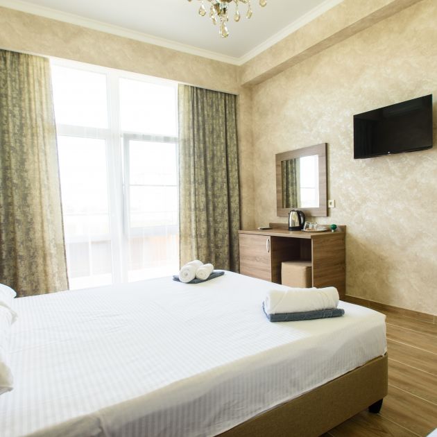 При заселении предложили на выбор 3 номера с красивыми интерьерами, хотя останавливались на 1 сутки :) В номере было чисто, уютно и комфортно, также номер был оснащён: кондиционером, большой кроватью, прикроватными тумбами, шкафом-купе, столом, холодильником, телевизором, небольшой прихожей (где можно повесить вещи и поставить обувь), ванной комнатой, феном, комплектом полотенец и мыльных принадлежностей. Отель расположен близко к морю. В отеле есть лифт, подогреваемый бассейн, шезлонги, игровая зона для детей, бар, столовая, мангал, дополнительные сушилки для вещей, вай-фай. Территория отеля облагорожена цветами, дополнительными местами для отдыха. Доброжелательные, отзывчивые, заботливые и просто замечательные владельцы и персонал! Помогут и подскажут с любым вопросом. Одно удовольствие отдыхать в этом отеле! Спасибо! Подробнее