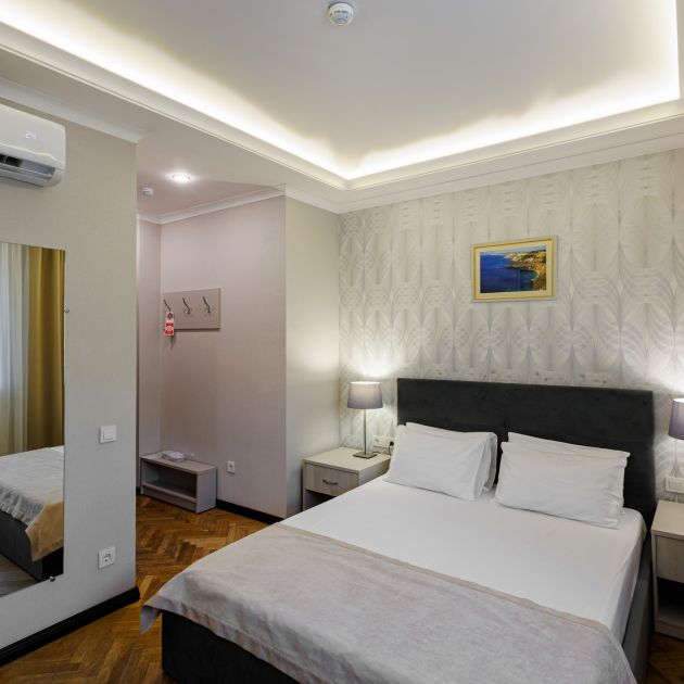 Отель находится на оживленной улице, где много кафе и ресторанов. Вечером и днем можно найти, где посидеть отдохнуть или просто перекусить. На первом этаже у входа расположено кафе, где проходят завтраки. Обслуживание отеля отличное. Номер чистый просторный, светлый. Отель находиться в пешей доступности от пляжа. Подробнее