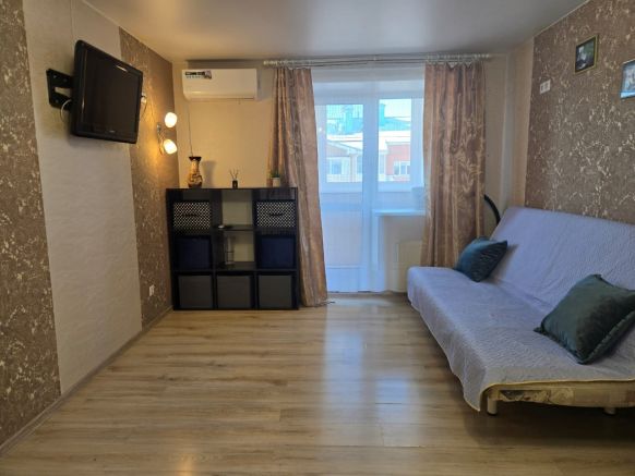 Это уютная отапливаемая квартира с такими удобствами: несколько спальных мест, раскладной диван, два телевизора, кондиционер, балкон, раздельный санузел со стиральной машиной. В спальне — затемненные шторы для качественного сна. Предусмотрены наборы постельного белья и полотенец, банные принадлежности.