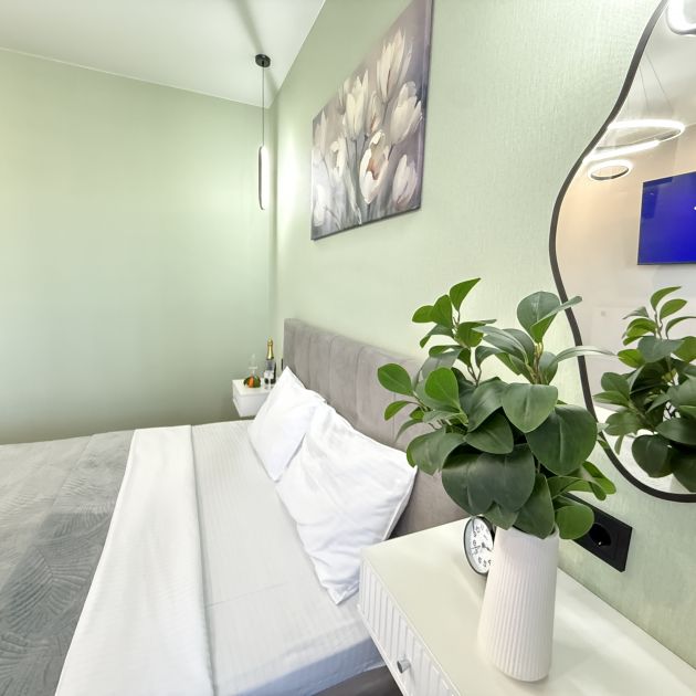 Просторные и комфортабельные апартаменты, ремонт современный. Скучать не пришлось, отлично работает телевизор. Сон здесь прекрасный, удобное спальное место и соседи не шумные. Кухонная зона отличная, есть на чем готовить, если имеется такая необходимость. Понравились яркие элементы в интерьере- текстиль, и удобное расположение. Добирались до любой точки города без проблем. Подробнее