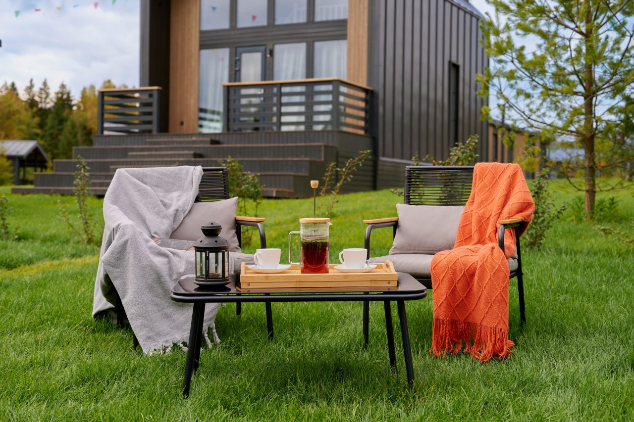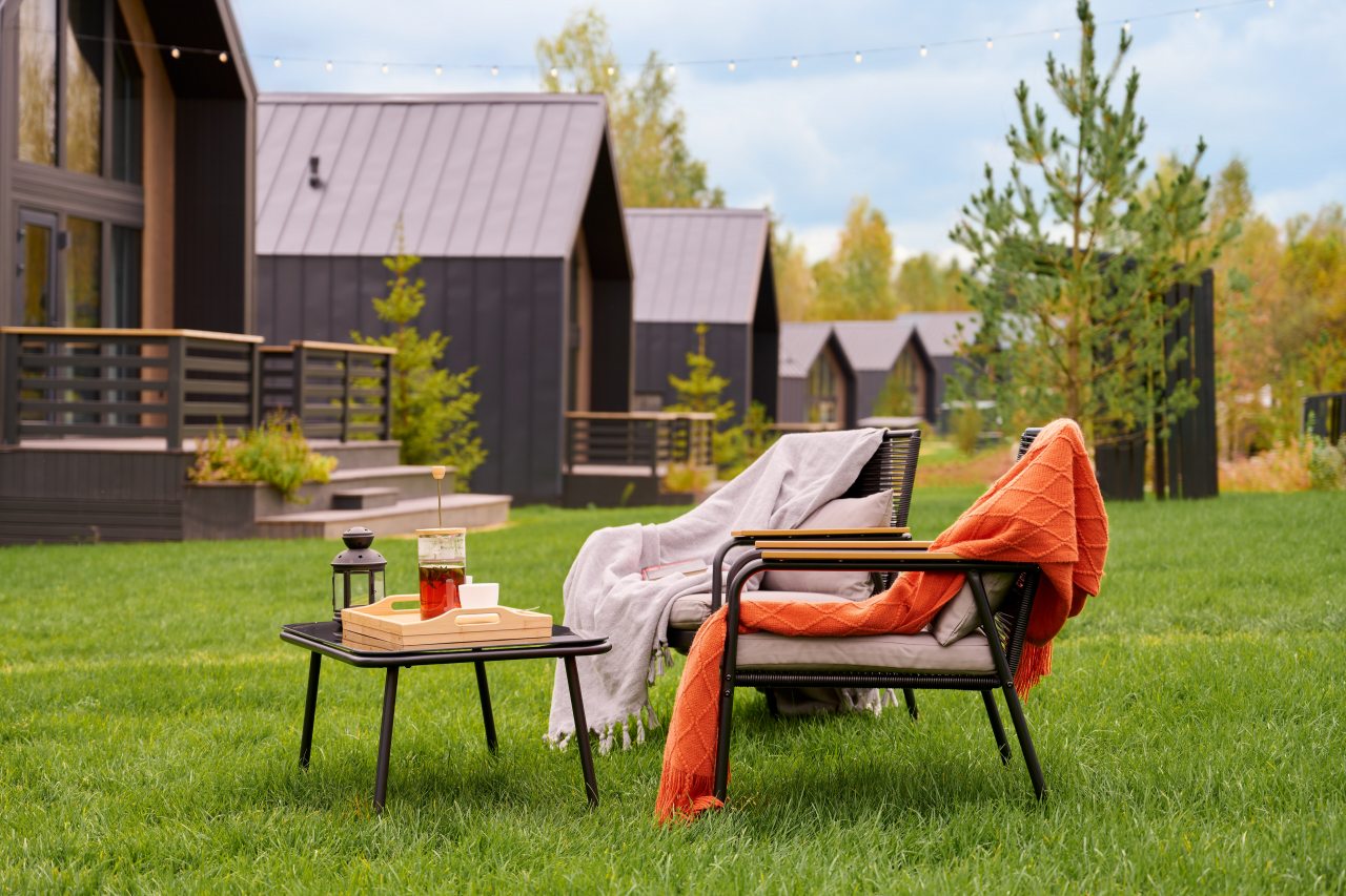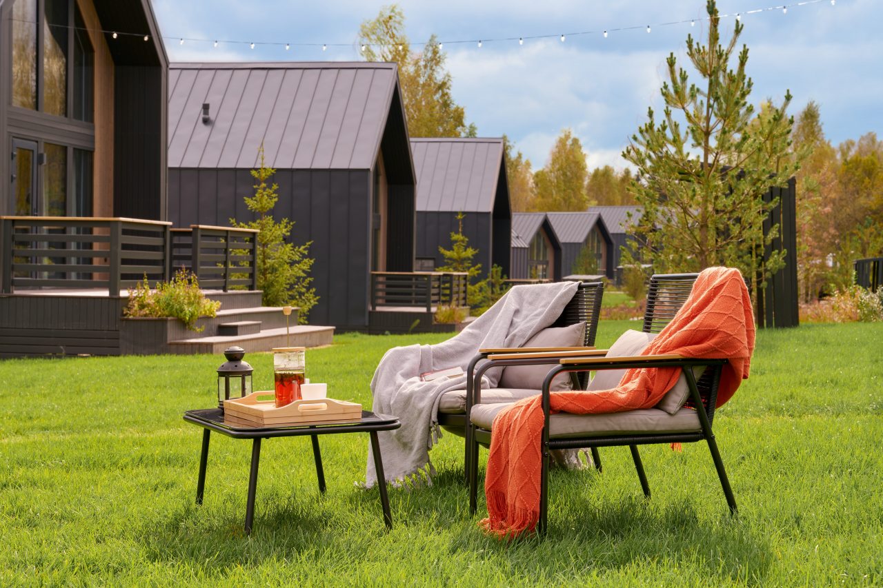 Для проживания доступны разнообразные дома. В каждом вас ожидает стильный дизайн, качественная и функциональная мебель, в том числе удобная кровать, телевизор, различные шкафы, а также собственный санузел с необходимой сантехникой.