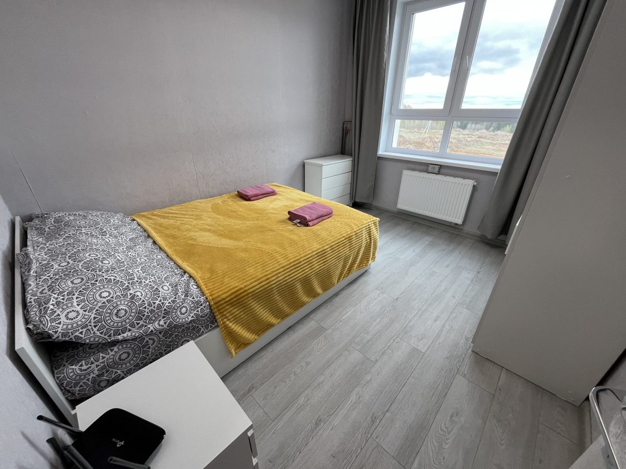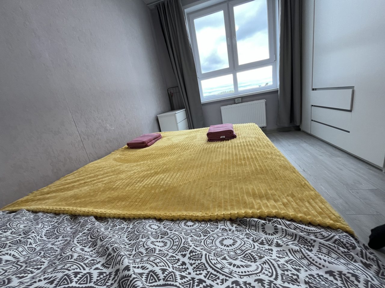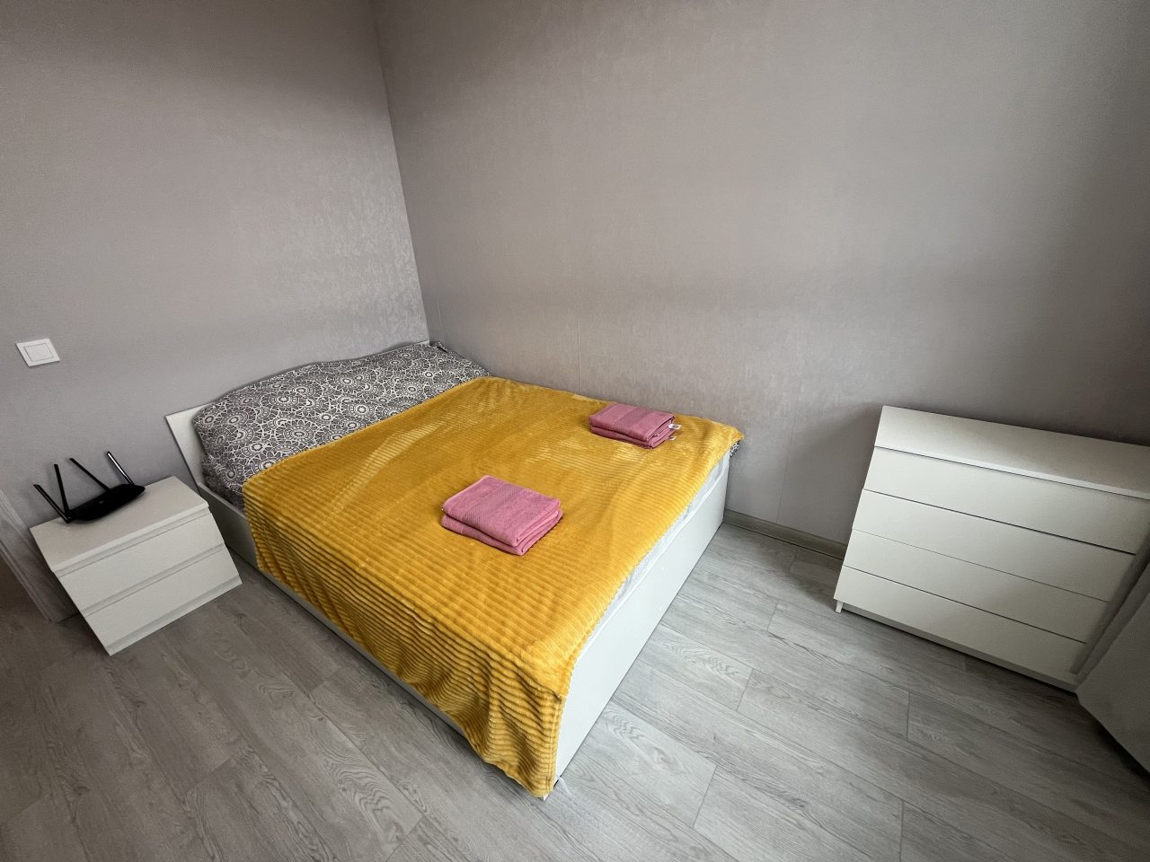 Это отличный вариант для размещения семьей или компанией, так как в наличии всё необходимое для жизни и отдыха, в том числе удобные спальные места, плотные шторы, телевизор, вместительный шкаф, а также современный санузел со стиральной машиной.