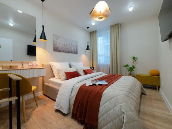 Неплохие апартаменты, продуманные элементы интерьера. Сделаны специально для приятных условий проживания. Спал глубоко, кровать шикарная, мягкий матрас, утро начинается с энергии. Никакого лишнего шума, звукопроницаемость исключена. Одинокий жилец получает максимум удовольствия, двигаясь свободно, настроение отличное, уют потрясающий. Повторюсь, останавливаться здесь рекомендовано.