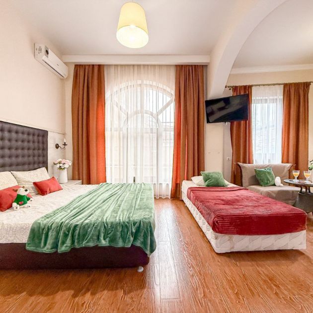 Гостевые дома в Кабардинке отлично подходят для отдыха большой компанией, ведь здесь вы сможете арендовать со своими друзьям целый этаж и проживать в соседних комнатах. В числе дополнительных удобств наверняка будут предложены: автостоянка, просторная веранда, где вечером можно будет провести несколько приятных часов на свежем воздухе. Подробнее ознакомиться со всеми услугами выбранного вами гостевого дома, можно отдельно на странице каждого объекта.
